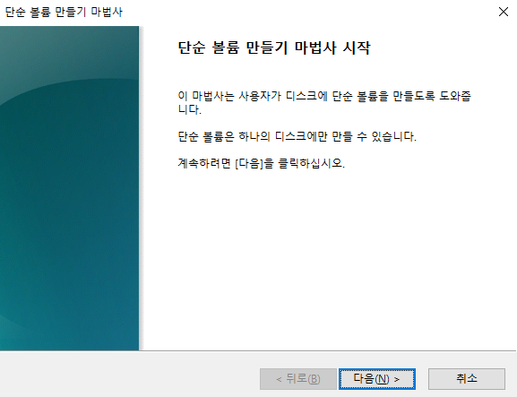 할당되지 않은 공간에 마우스 우클릭으로 새단순 볼륨 클릭 하고 아래 사진처럼 포맷까지 진행해 주시면 됩니다.